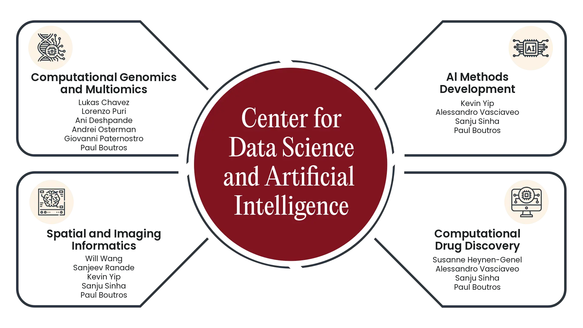 The future of biomedical research depends on our ability to make sense of vast, complex datasets. At Sanford Burnham Prebys, the Center for Data Science and Artificial Intelligence brings together experts in AI, statistics, genetics and more to uncover patterns, generate insights and spark innovation. Their work turns raw information into knowledge that drives scientific breakthroughs and new possibilities for human health.